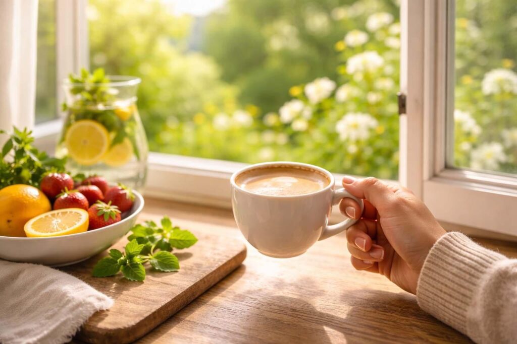 Pro jarní detox může být ideální kombinace: nejprve sklenice vody, krátké protažení nebo krátká procházka a poté šálek kvalitní kávy. Takový ranní rituál pomáhá tělu postupně přejít z klidového režimu do aktivního dne.